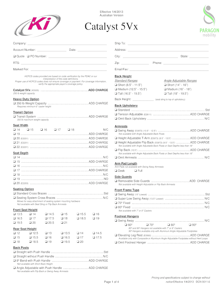 Effective 1×4×2013 Australian Version Catalyst 5Vx Company: Ship To: Account Number: Date: Address: Quote PO Number: City: State: RTS: Zip: Marked For: Email×Fax: HOPES codes provided are based