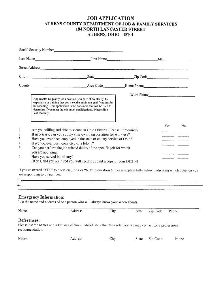 Anyone seeking employment with the Athens County Department of Job & Family Services in Ohio can apply using this job application form.