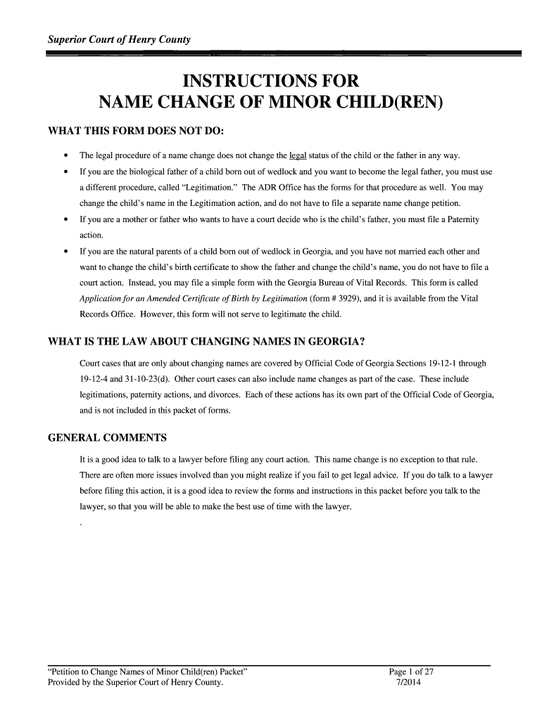 This document provides instructions and forms for changing the names of minor children in Henry County, Georgia, including legal requirements, procedures, and necessary forms to be completed.