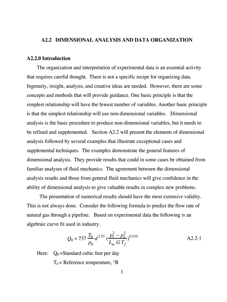 A2.2 DIMENSIONAL ANALYSIS AND DATA ORGANIZATION A2.2.0 Introduction The organization and interpretation of experimental data is an essential activity that requires careful thought. There is not a