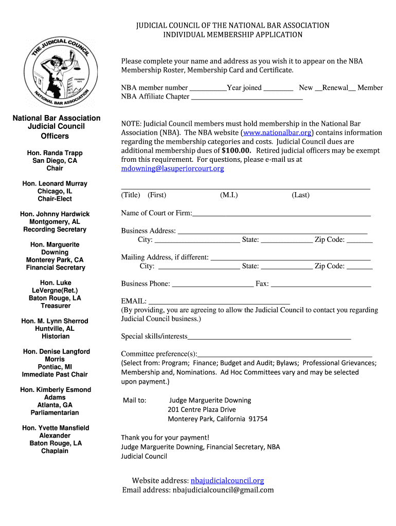 Get the free NBA Judicial Council Membership Application 2014-2015 - nbajudicialcouncil