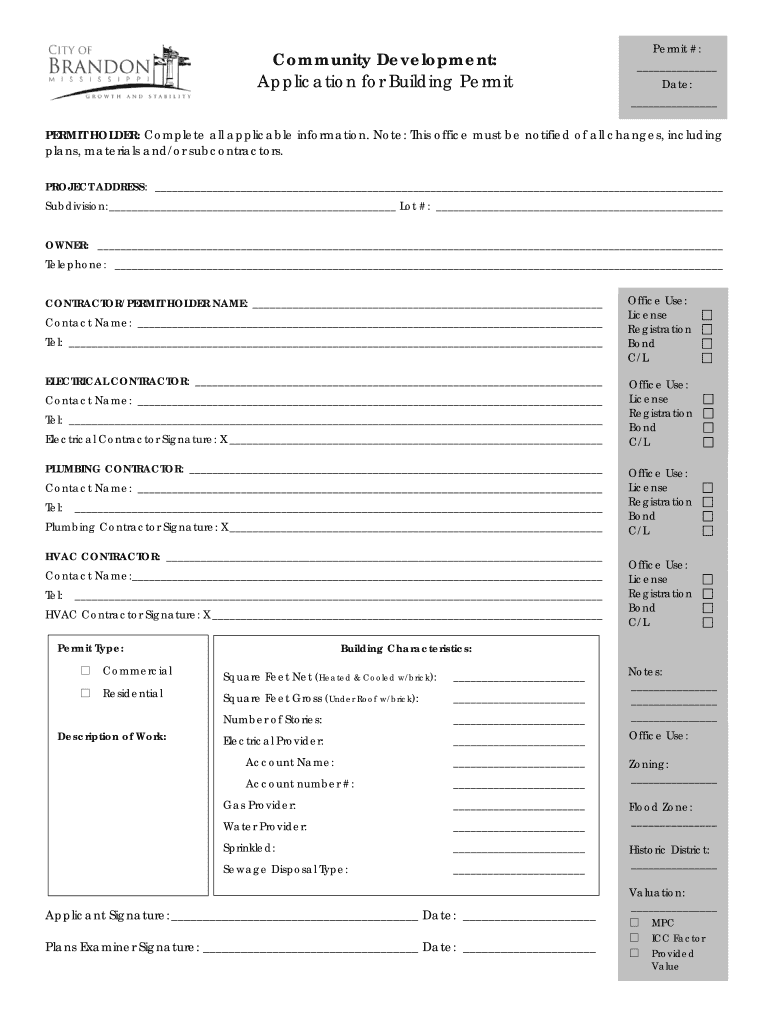 Get the free Building bPermitb Application - City of Brandon - cityofbrandon