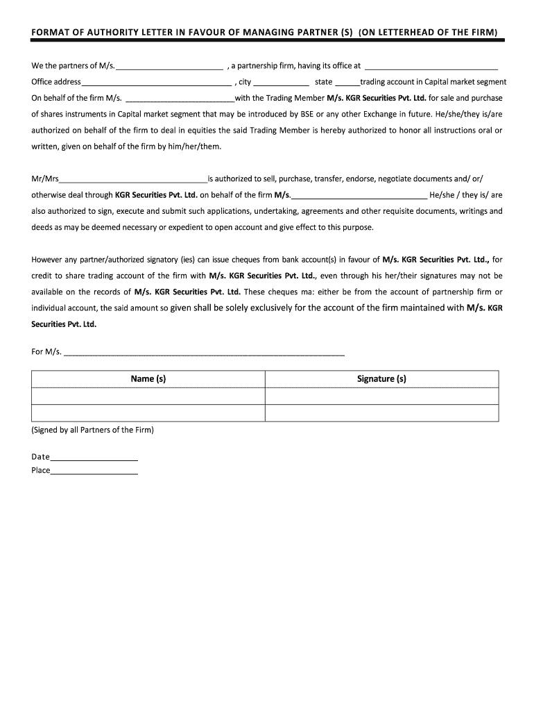 Get the free Authority letter in favour of Managing Partner(S) - KGR Securities Pvt ...