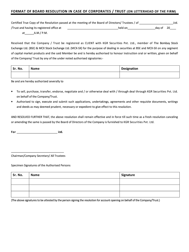 Get the free FORMAT OF BOARD RESOLUTION IN CASE OF CORPORATES TRUST