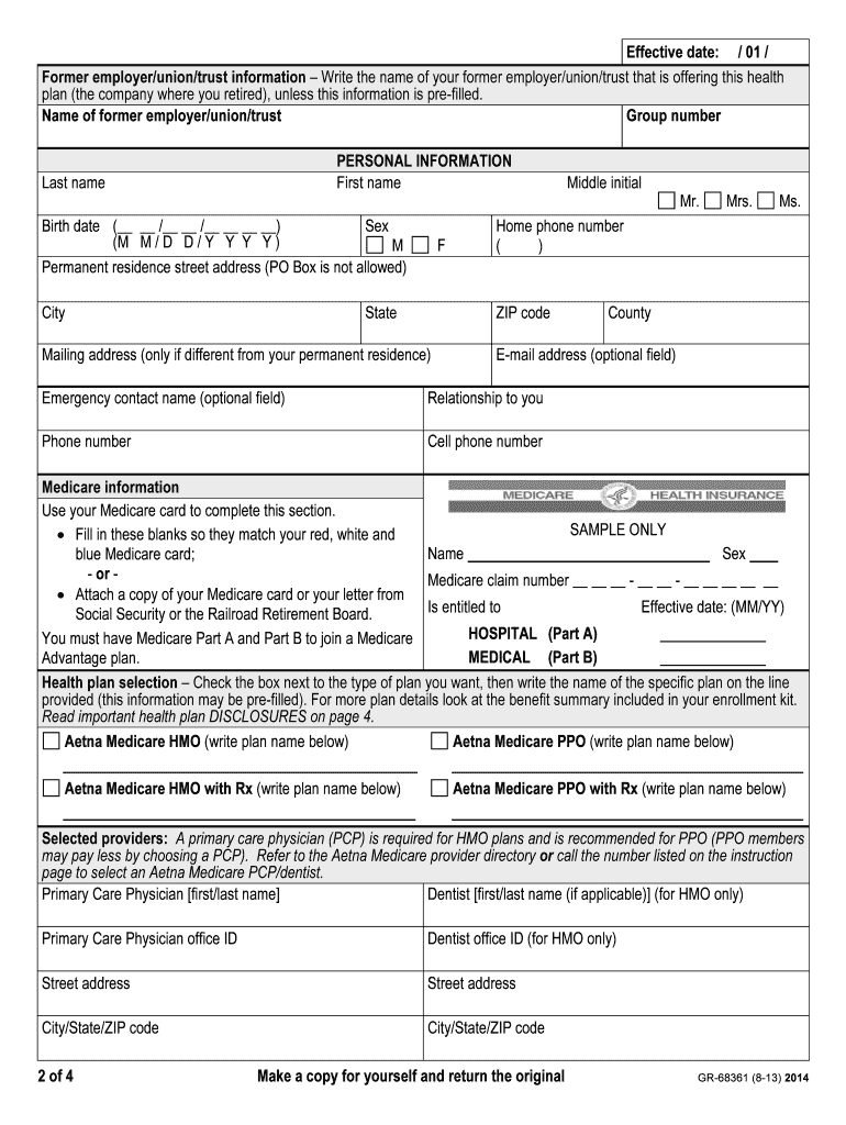 Aetna Medicare Advantage Plan 2014 Employer Group Enrollment Form Health Maintenance Organization (HMO) Preferred Provider Organization (PPO) Enrollment instructions Answer all questions completely.