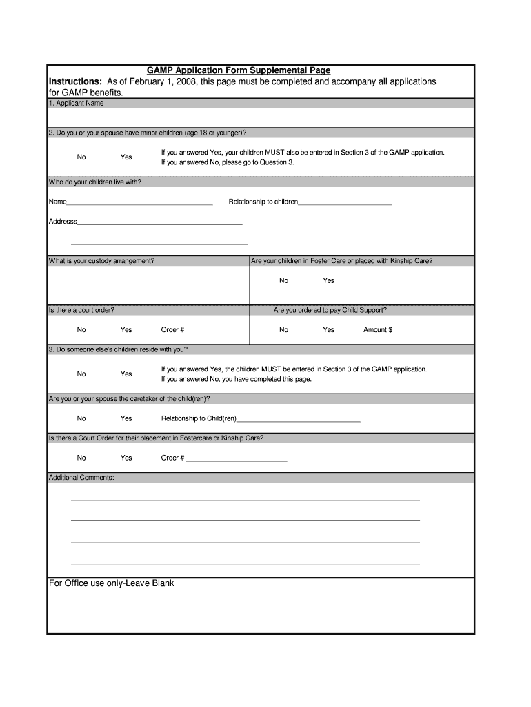 Get the free GAMP Application Form Supplemental Page