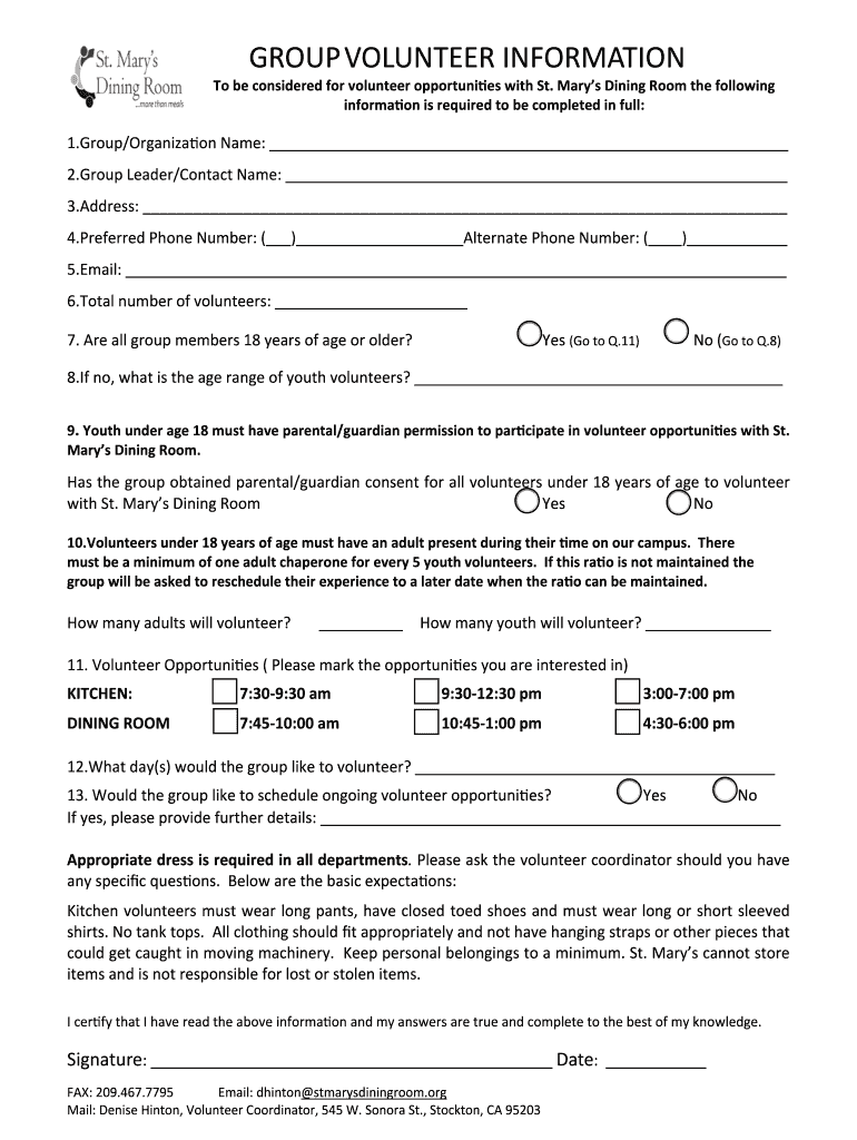 Organizations or nonprofits that are actively seeking volunteers to support their initiatives can utilize the new group volunteer 2015 form to collect information from potential volunteers.