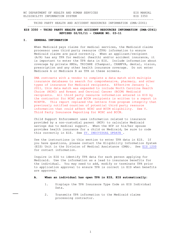 This document provides guidelines for entering and managing Third Party Resource (TPR) information within the Eligibility Information System (EIS), essential for ensuring correct Medicaid claims processing