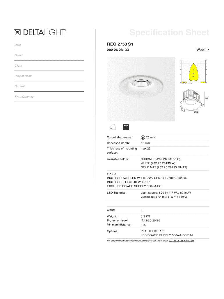Specification Sheet Date RED 2750 S1 Weblink 202 26 28133 Name Client Project Name Quote# Type×Quantity Cutout shape×size: 76 mm Recessed depth: 55 mm Thickness of mounting max.22 surface: Available