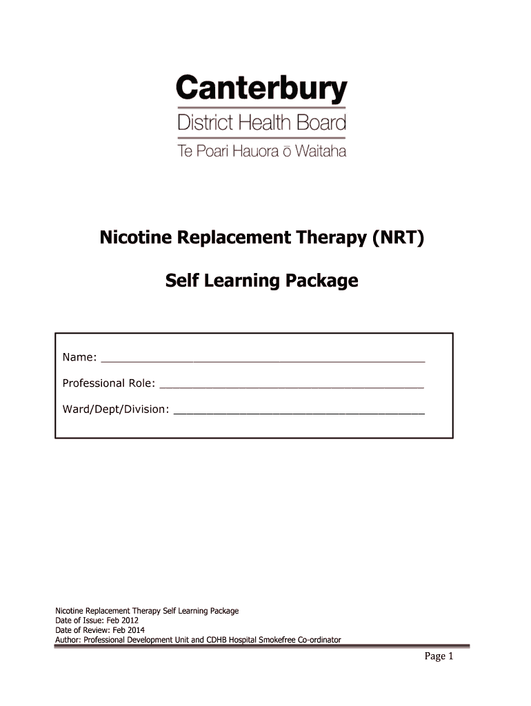 Get the free Nicotine Replacement Therapy Self Learning Package