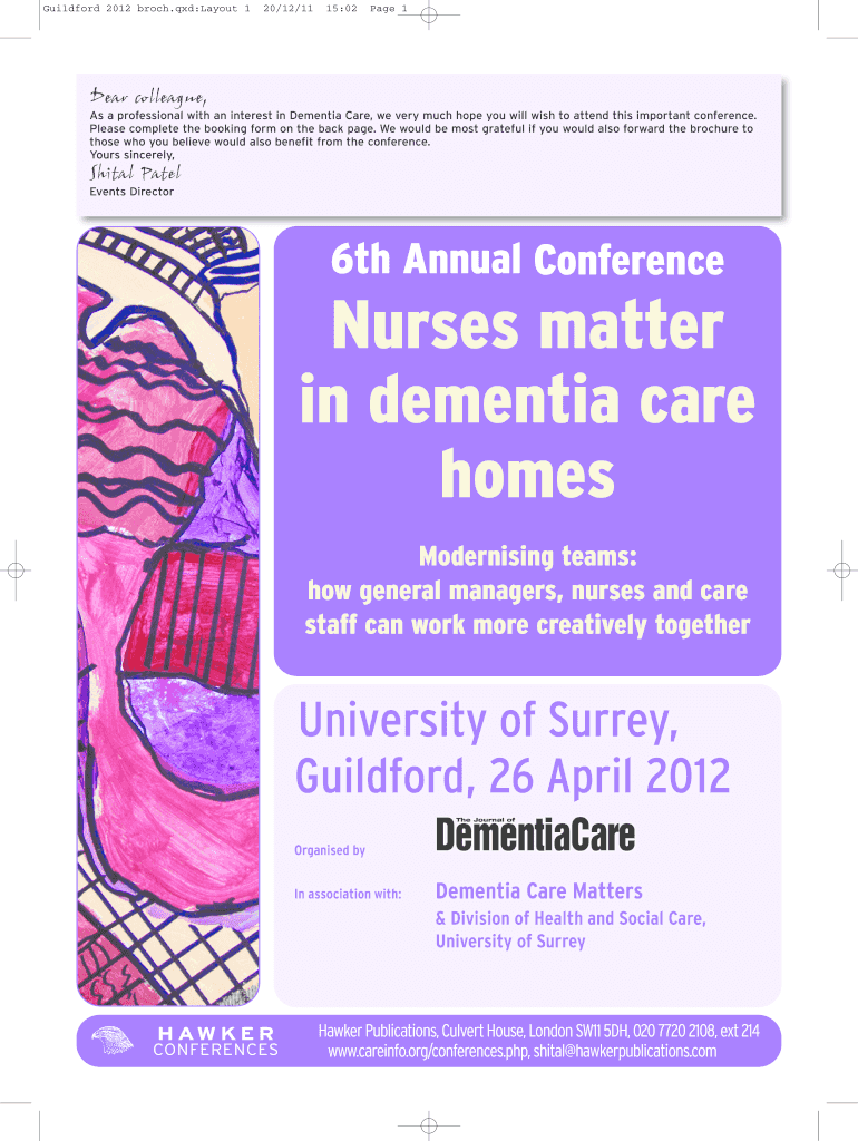 Guildford 2012 Brock.QED:Layout 1 20×12/11 15:02-Page 1 Dear colleague, As a professional with an interest in Dementia Care, we very much hope you will wish to attend this important conference. Please