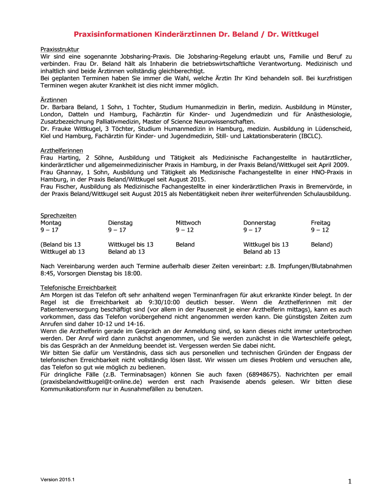 Holen Sie sich kostenlos Praxisinformationen Kinderrztinnen Dr Beland Dr Wittkugel - kinderaerzte...