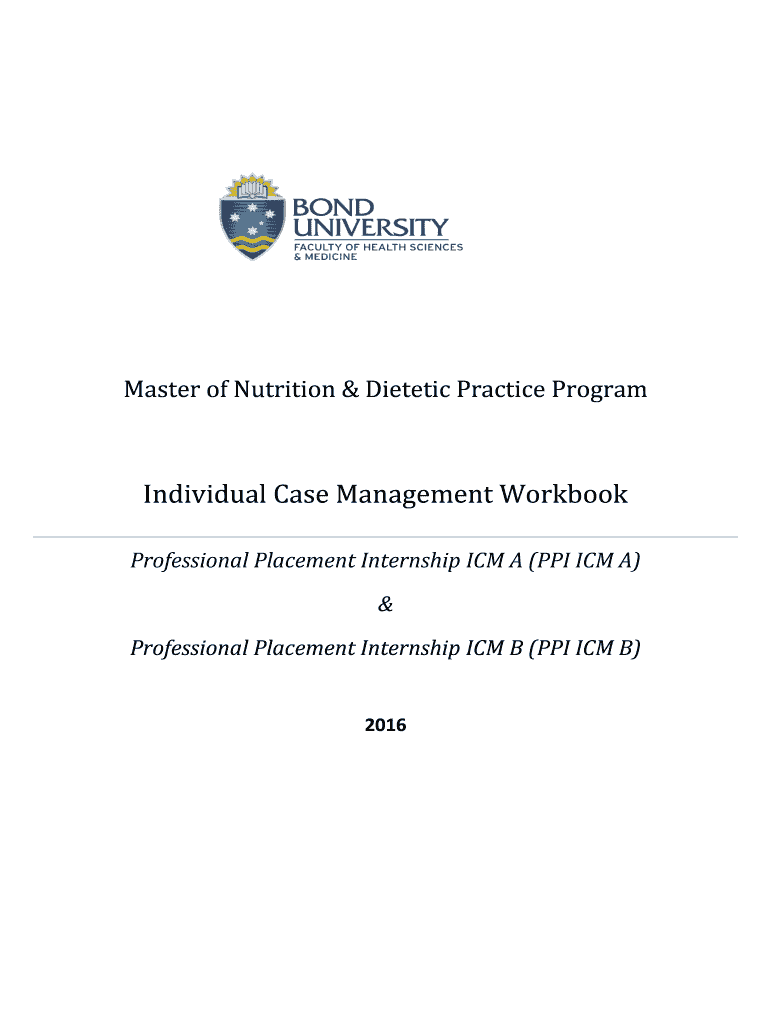 Master of Nutrition & Dietetic Practice ProgramIndividual Case Management Workbook Professional Placement Internship ICM A (PPI ICM A) & Professional Placement Internship ICM B (PPI ICM B×2016CONTENTS