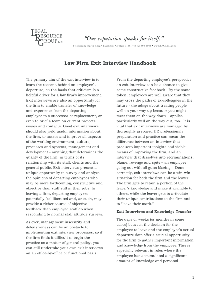 Get the free Law Firm Exit Interview Handbook