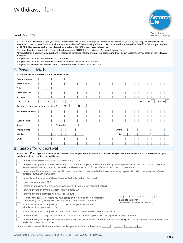 Withdrawal form Issued I August 2014 Please complete this form to give your payment instructions to us. You must sign this form, and you should keep a copy of your payment instructions. We recommend
