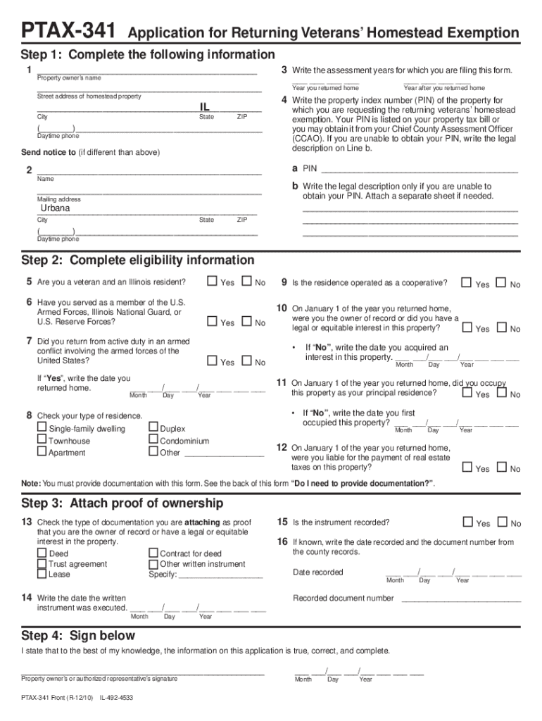 To fill out PTAX-341, you must provide accurate information about your property, including ownership details, property classification, and the specific exemption being claimed, if applicable.