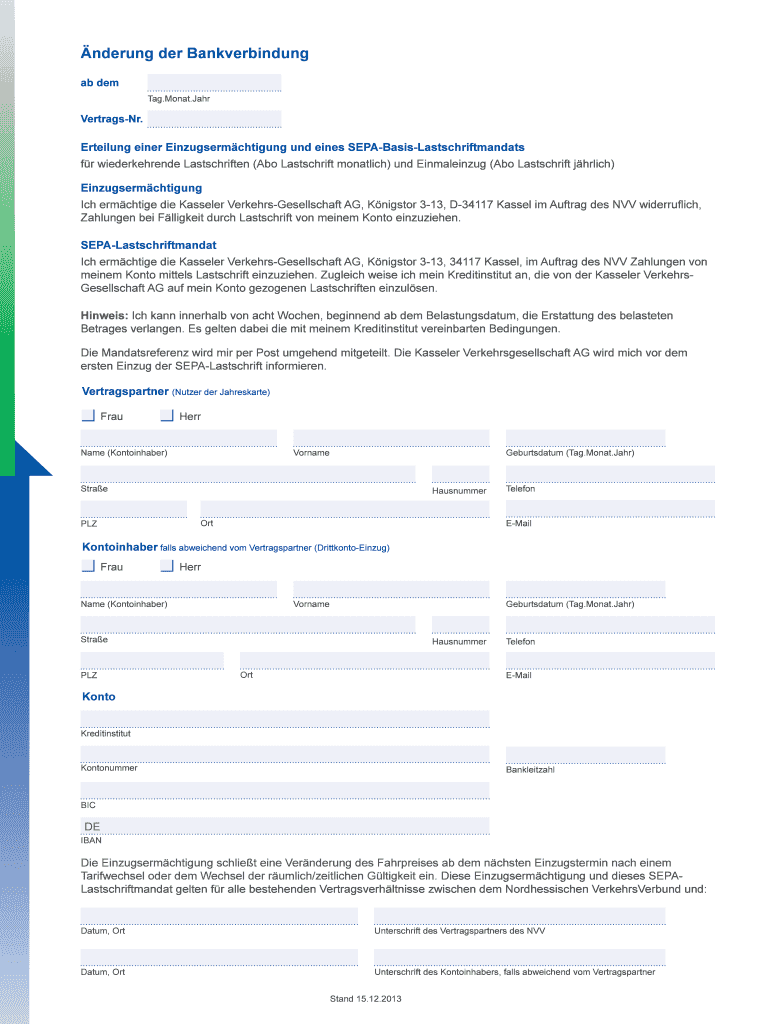 Holen Sie sich kostenlos Nderung der Bankverbindung - bKVGb Kassel - kvg