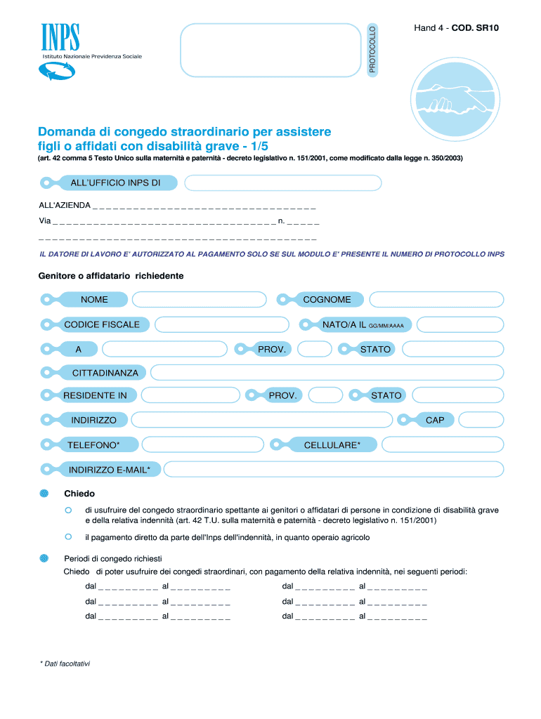 La domanda di congedo straordinario deve essere compilata utilizzando l'apposito modulo fornito dal datore di lavoro e deve essere presentata secondo le modalità indicate.