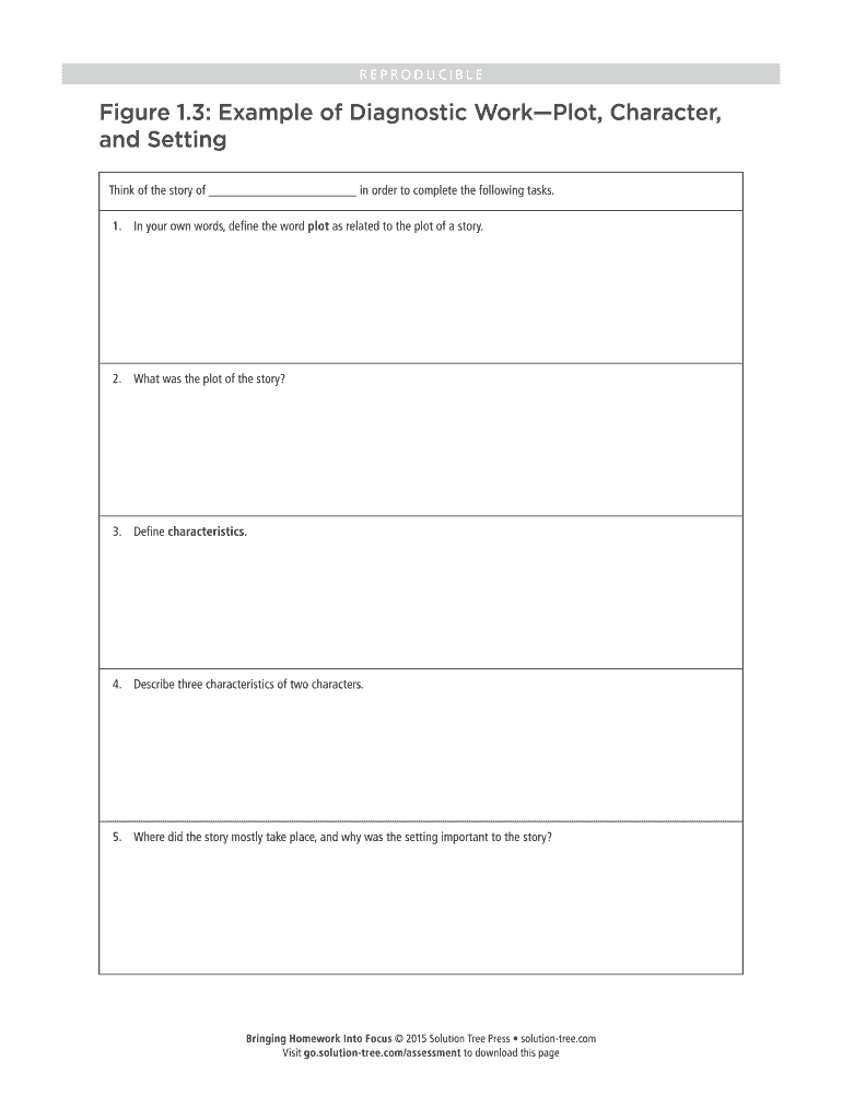 REPRODUCIBLE Figure 1.3: Example of Diagnostic Workflow, Character, and Setting Think of the story of in order to complete the following tasks. 1. In your own words, define the word plot as related