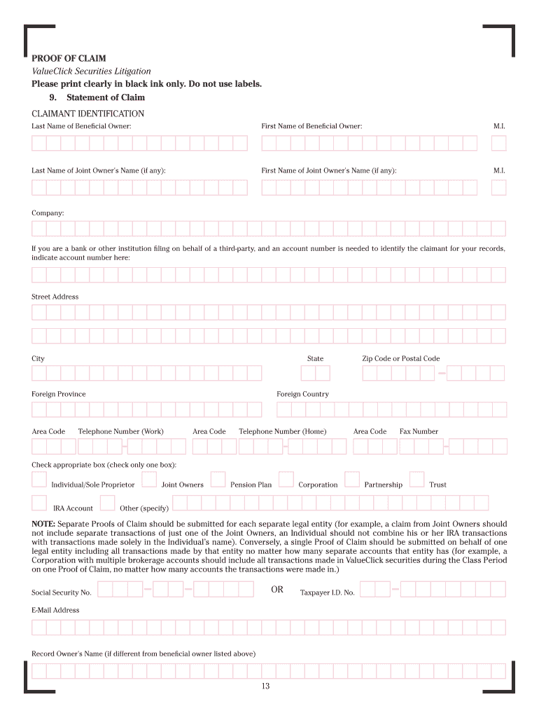 Get the free ValueClick Inc Settlement Proof - Shareholders Foundation