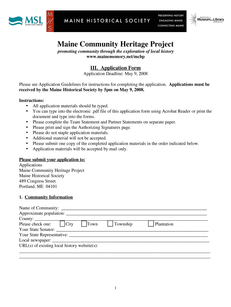Maine Community Heritage Project is not the form you're looking for?Search for another form here.