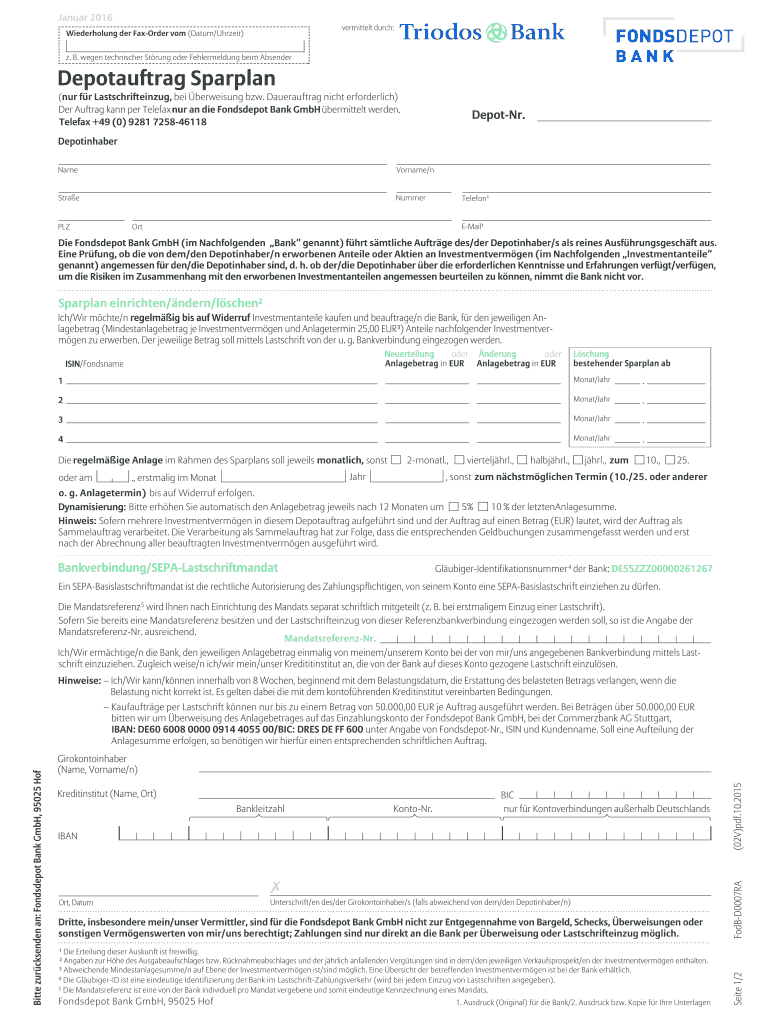 So füllen Sie depotauftrag fondssparplan - triodos aus