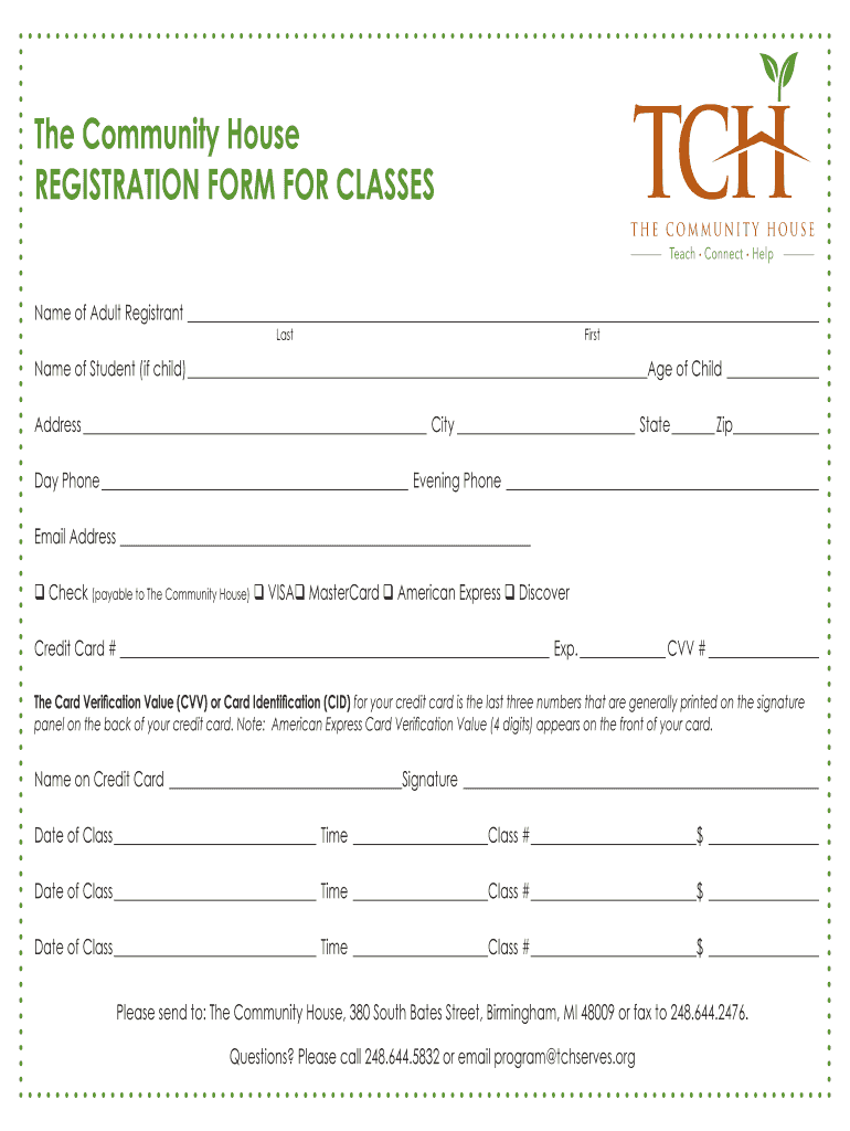 Get the free The Community House REGISTRATION FORM FOR CLASSES