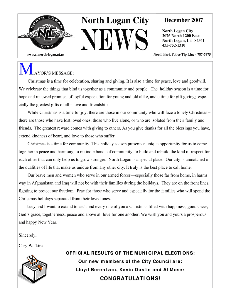 Get the free North Logan City December 2007 North Logan City 2076 North 1200 East North Logan, UT...