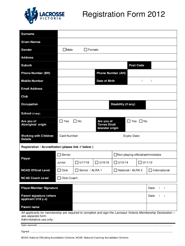 This registration form serves several key purposes. First, it provides access to competitions and events organized by Lacrosse Victoria. Proper documentation through the form is necessary for ensuring eligibility and safety measures for all participants. Additionally, applicants must adhere to requirements like completing a Membership Declaration to validate their registration.
