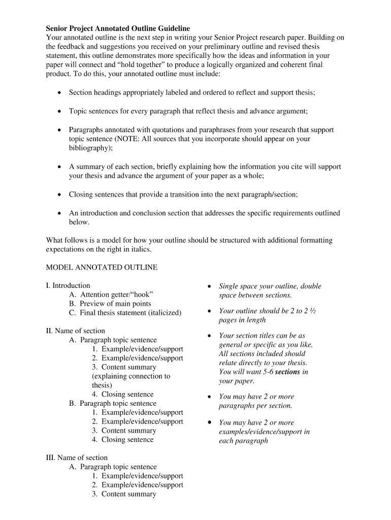 Get the free Senior Project Annotated Outline Guideline