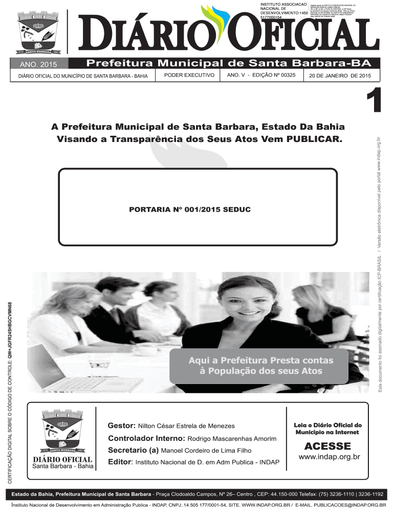 DARIO OFFICIAL INSTITUTE ASSOCIATED NATIONAL DE DESENVOLVIMENTO:1450 5177000154 Prefecture Municipal de Santa Barbara BA DARIO OFFICIAL DO MUNICIPAL DE SANTA BARBARA BAHIA POWER EXECUTIVE ANO. V EDIT