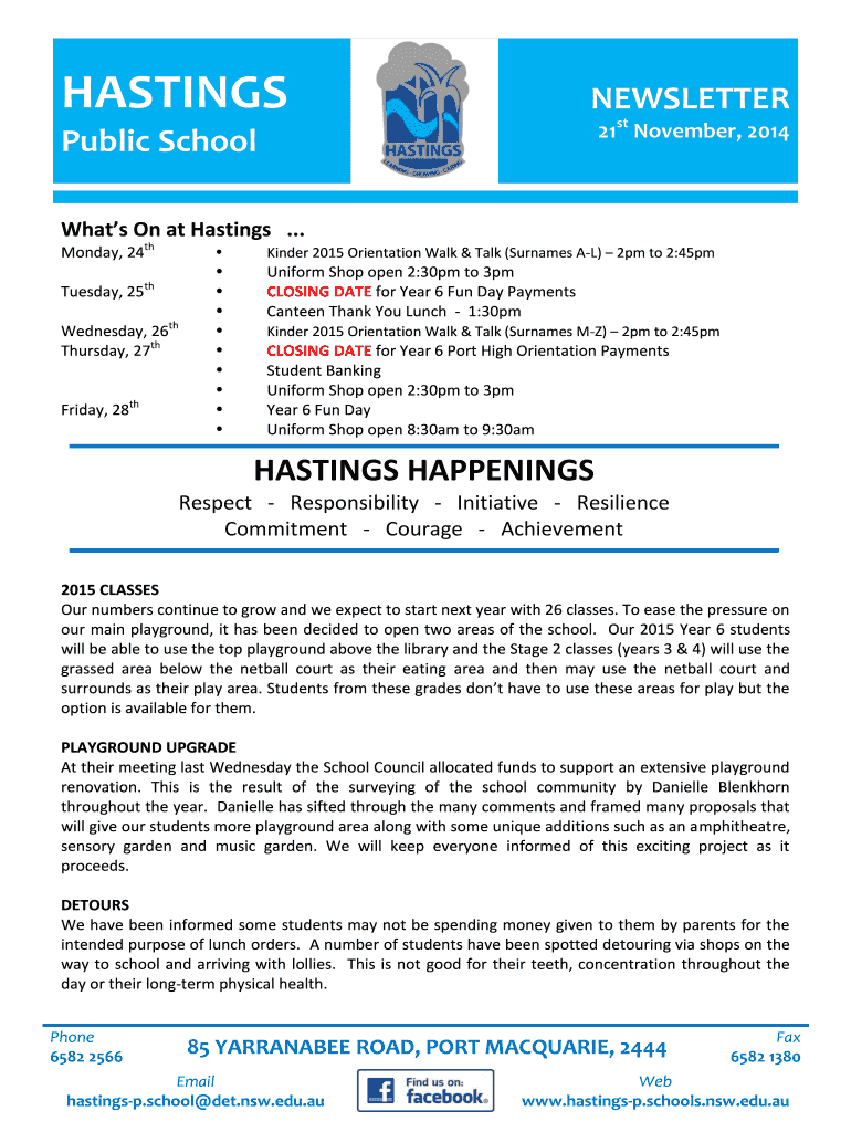 Get the free BHASTINGSb NEWSLETTER - bhastingsb-pbschoolsbbnswbbedubau - hastings-p schools nsw edu