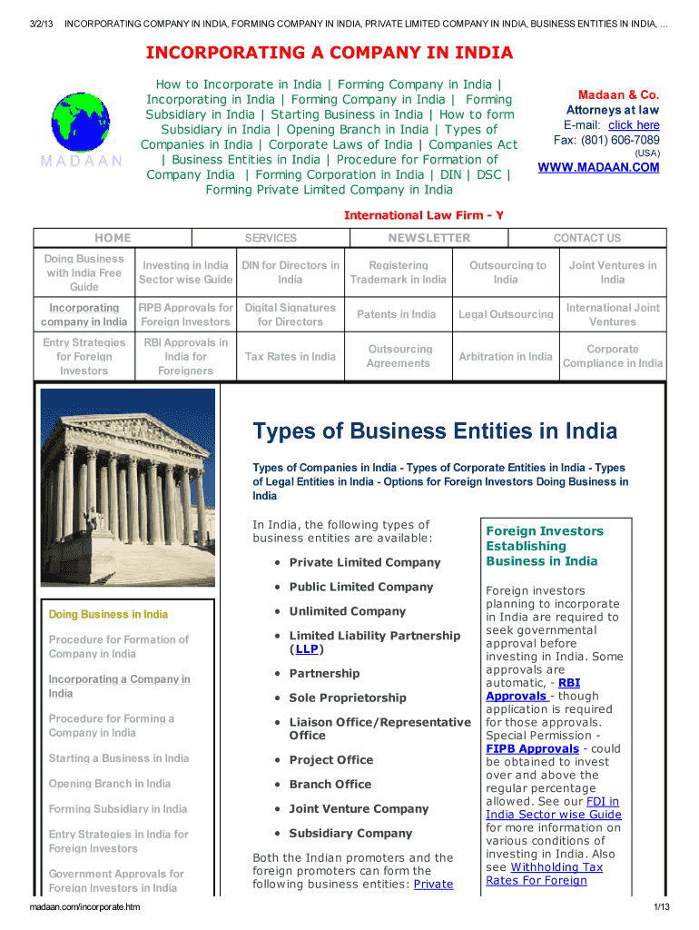 Document provides detailed information on how to incorporate a company in India, including types of business entities, government procedures, approvals, and requirements for foreign investors.