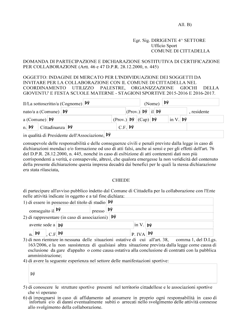 Ottieni il gratuito All B COMUNE DI CITTADELLA DOMANDA DI PARTECIPAZIONE E - comune cittadella pd