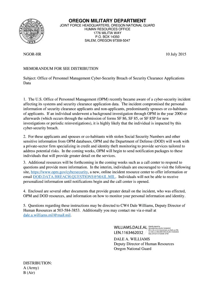 Get the free OPM Security Breach Message July 2015 - Oregon - or ng