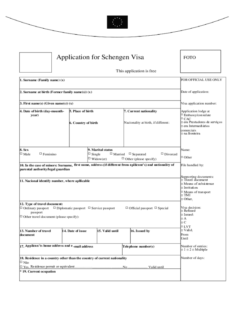 Field-by-Field Instructions for the Schengen Visa Application Form