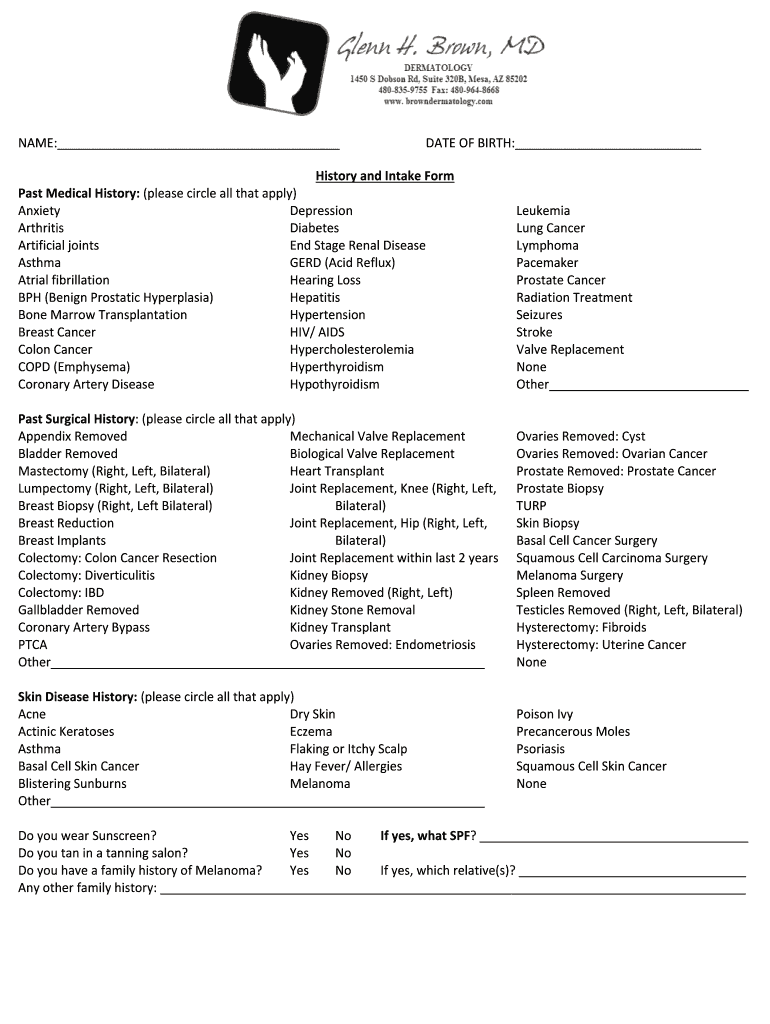History and Intake Form Past Medical History: (please circle all that apply) Anxiety Depression Leukemia Arthritis Diabetes Lung Cancer Artificial joints End ...