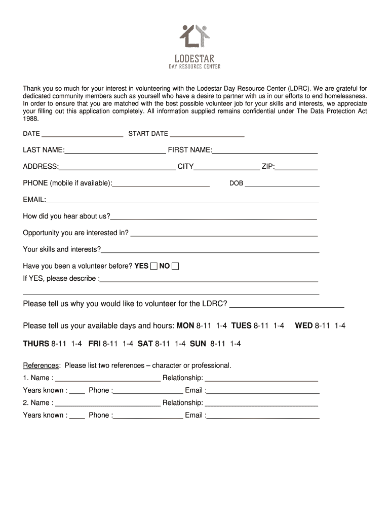 Get the free Thank you so much for your interest in volunteering with the Lodestar Day Resource C...
