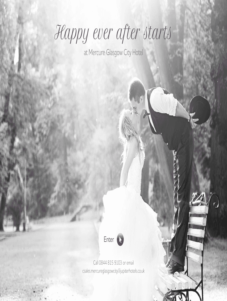 Happy ever after starts at Mercury Glasgow City Hotel Enter Call 0844 815 9103 or email sales.mercureglasgowcity jupiterhotels.co.UK Mercury Glasgow City Hotel WELCOME sales.mercureglasgowcity jupiterhotels.co.UK
