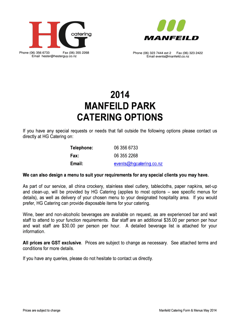 Get the free 2014 bMANFEILDb PARK CATERING OPTIONS