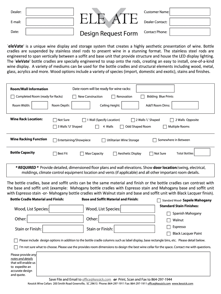 Get the free Design Request Form - bkessickwinecellarsbbcomb