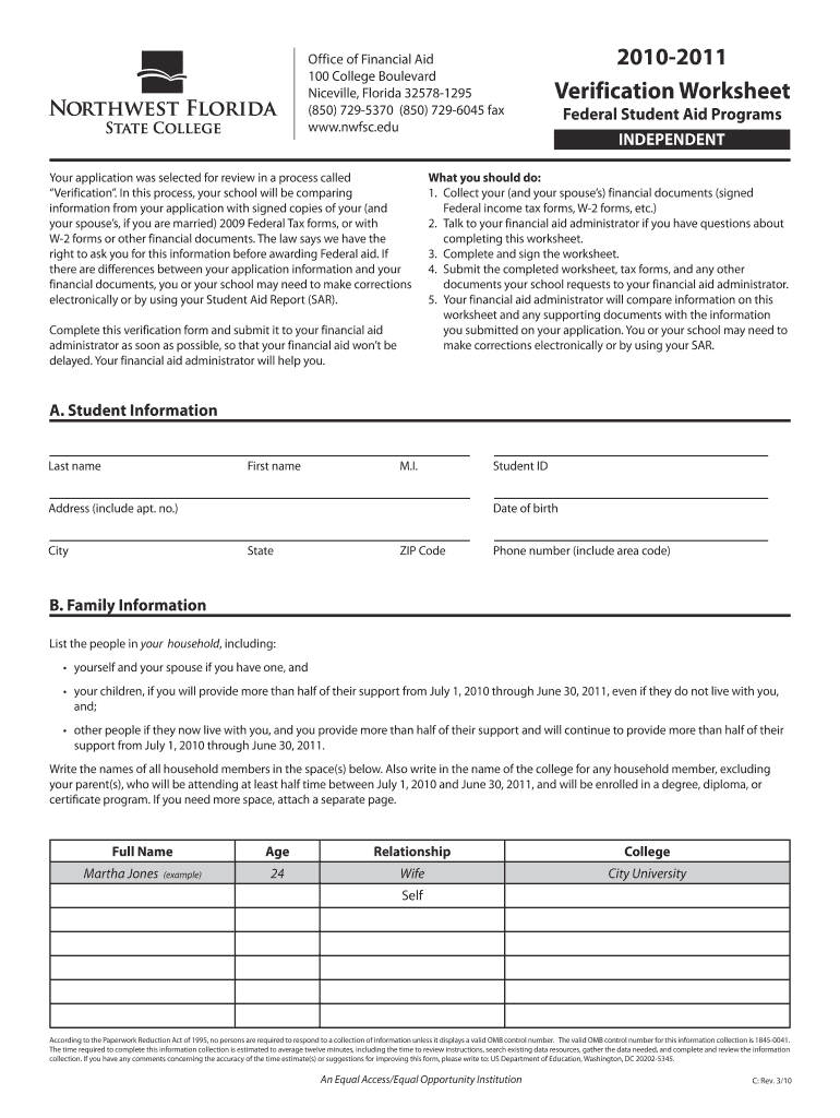 Get the free Verification WkshtIndependentindd - Northwest Florida State College - nwfsc