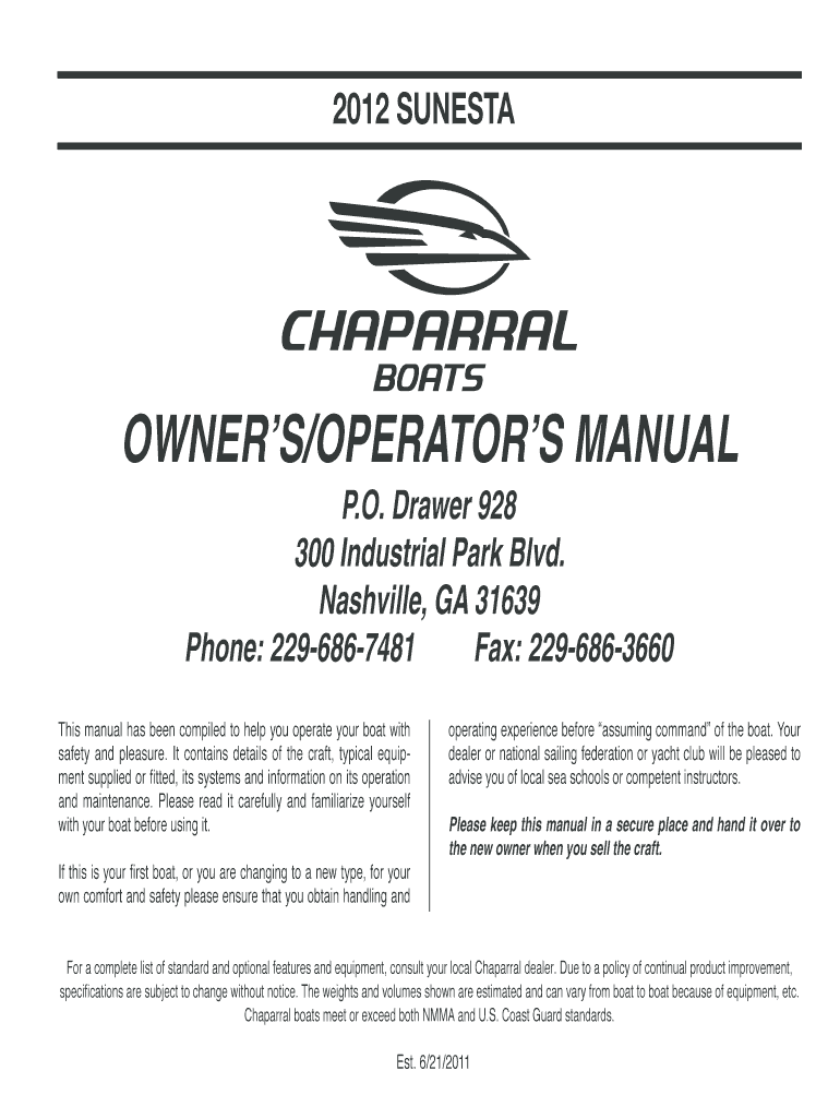 Get the free 2012 SUNESTA OWNER’S/OPERATOR’S MANUAL