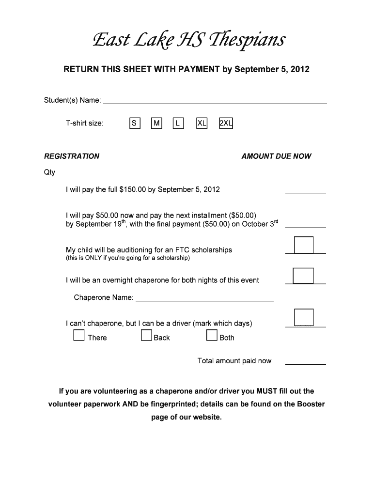East Lake HS Thespians Sponsor Brad Brady 1300 Silver Eagle Drive Tarpon Springs Florida 34688 August 2012 Please forgive this for being last minute and semirushed. Unfortunately, because FTC registration