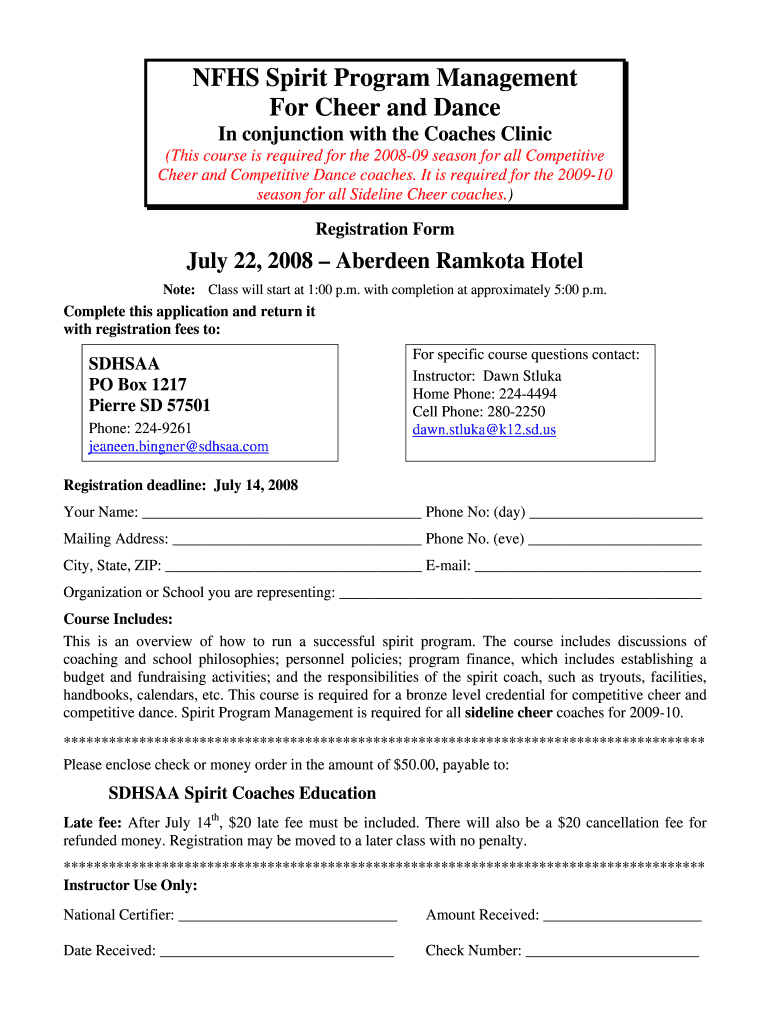 NFHS Spirit Program Management For Cheer and Dance In conjunction with the Coaches Clinic (This course is required for the 200809 season for all Competitive Cheer and Competitive Dance coaches. It
