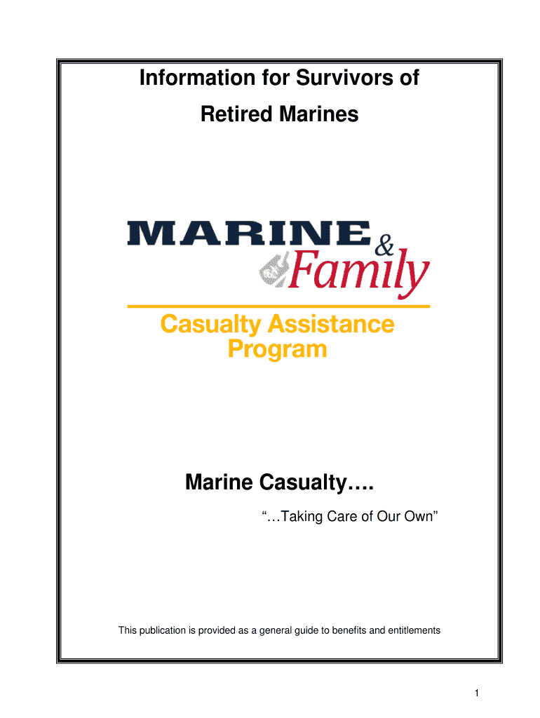 Information for Survivors of Retired Marines Marine Casualty. Taking Care of Our Own This publication is provided as a general guide to benefits and entitlements 1 Information for Survivors of Retired