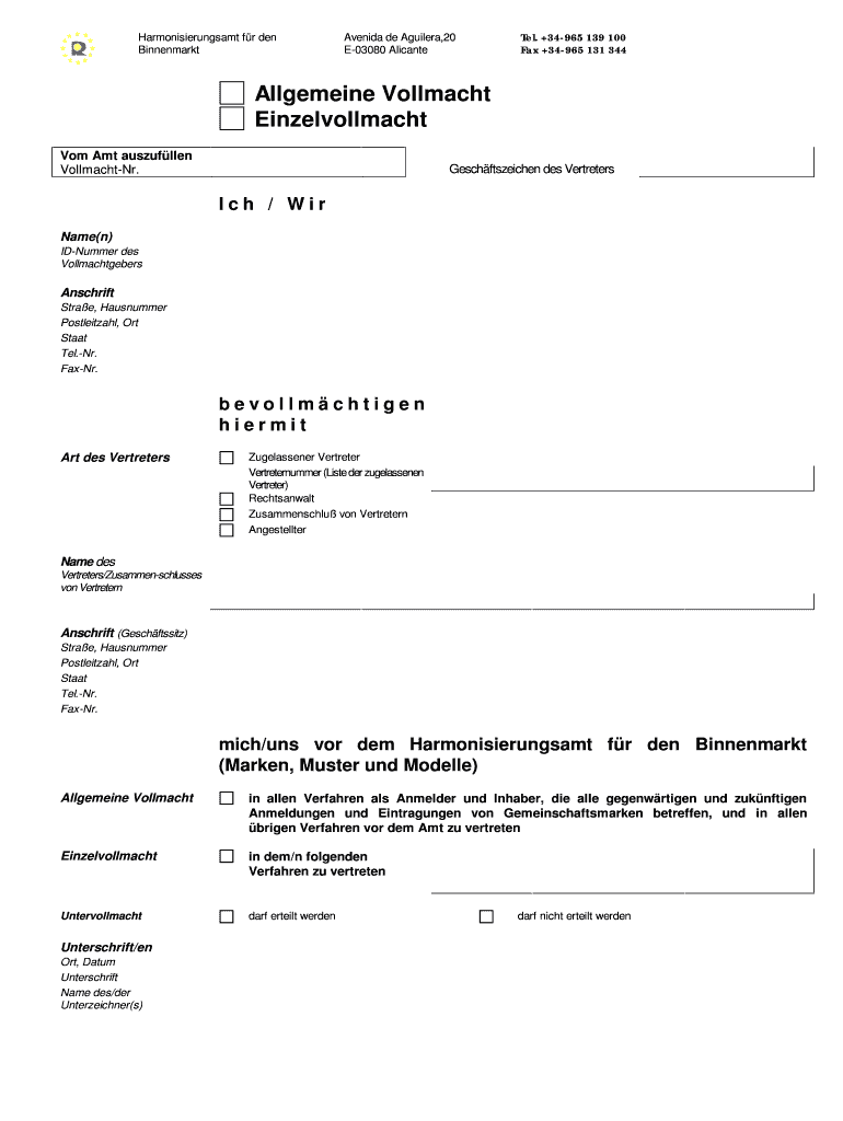 Harmonisierungsamt f r den Binnenmarkt Avenida de Aguilera,20 E-03080 Alicante Tel. +34-965 139 100 Fax +34-965 131 344 Allegiance Villach Einzelvollmacht Com Amt Yusuf Allen Vollmacht-Nr. Ge sch