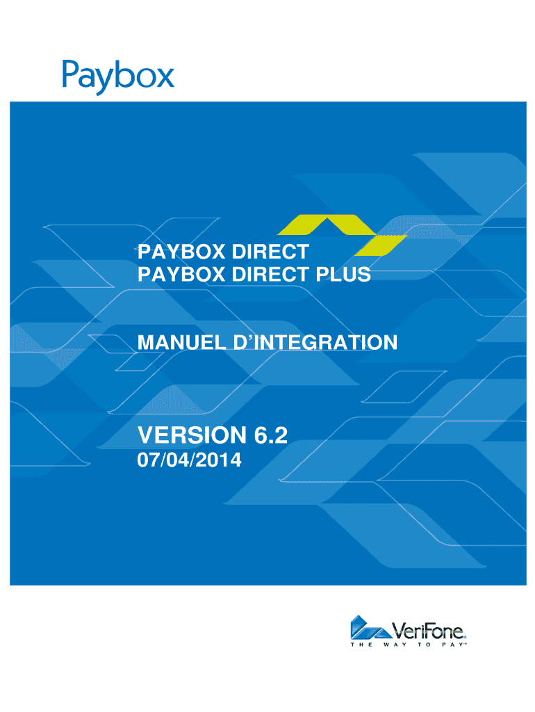 PAY BOX DIRECT PLUS MANUEL INTEGRATION VERSION 6.2 07×04/2014 HISTORIZE DES MODIFICATIONS DATE VERSION 20×04/2012 5.06B 31×01/2013 5.07 DESCRIPTION AUTEUR Version initial APRS remote. Service Projects