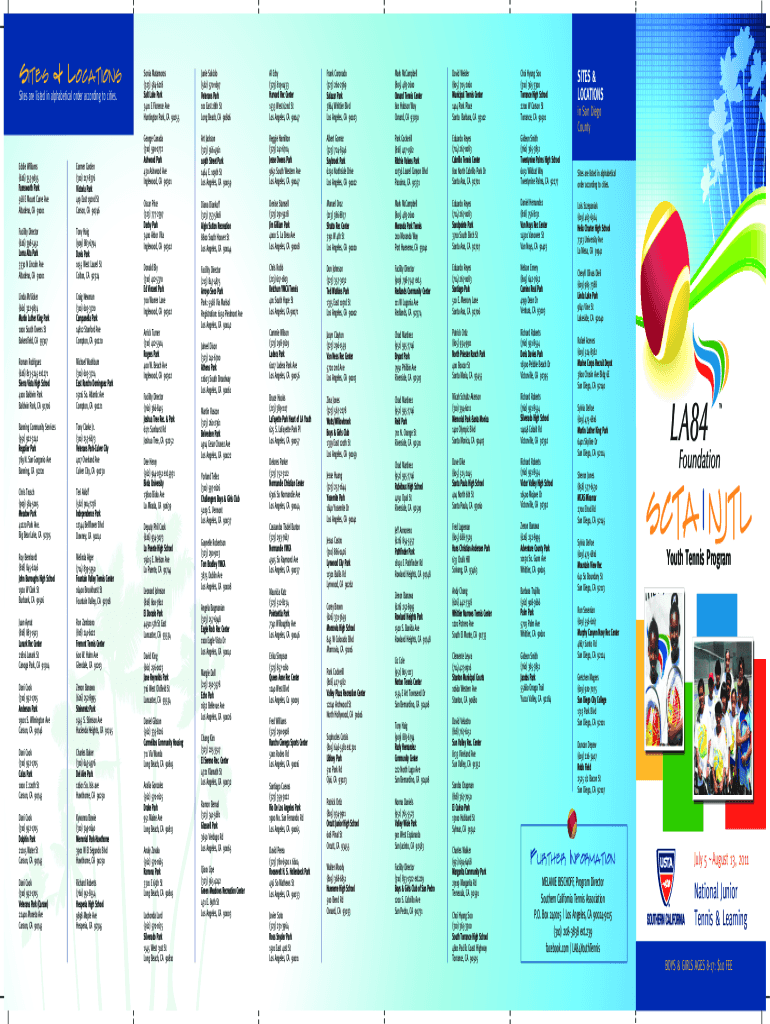 The LA84 Foundation Youth Tennis Program Registration Form is vital for parents looking to enroll their children, aged 8-17, in the SCTA/NJTL Youth Tennis Program. The LA84 Foundation, dedicated to enhancing the lives of youth through sports, plays a crucial role in promoting healthy lifestyles and skills development. This form allows parents to officially register their children in a California youth tennis program that emphasizes both instruction and sportsmanship, ensuring a comprehensive introduction to the sport.