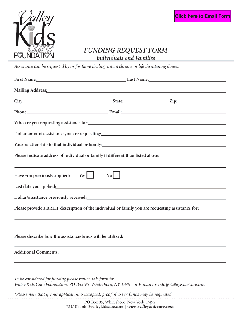 Get the free FUNDING REQUEST FORM Individuals and ... - valleykidscare.com
